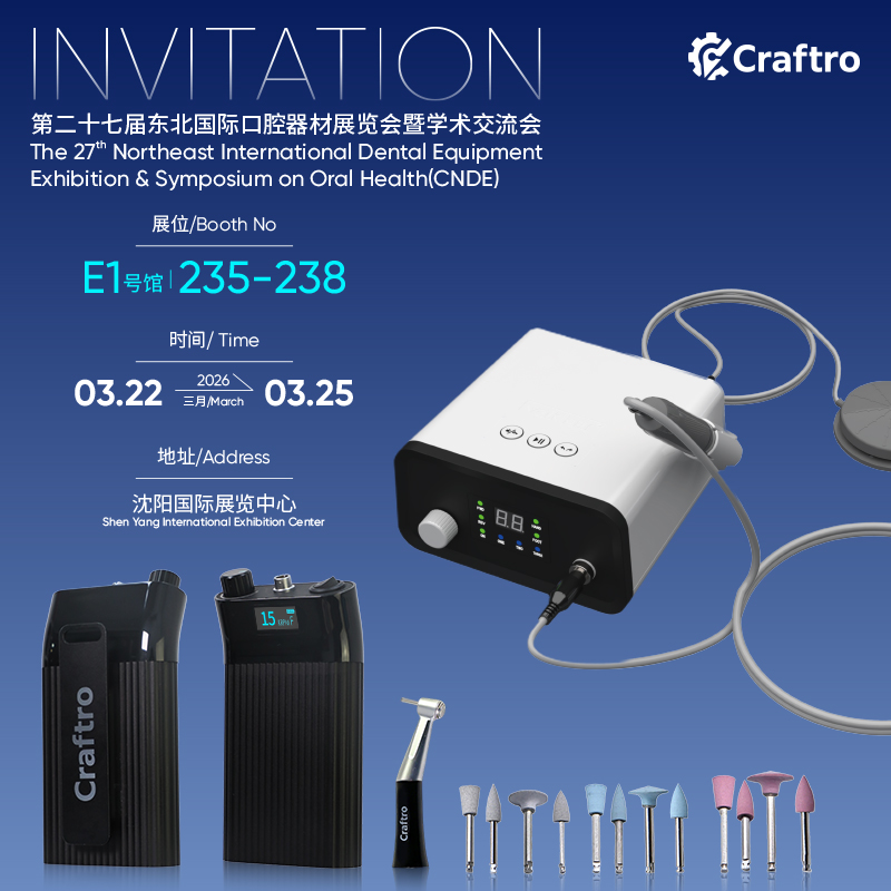 As a premier hub for the dental industry in Northern China, the 27th Northeast International Dental Equipment Exhibition (CNDE) 2026 provides the perfect stage for Craftro Tech to unveil our latest high-performance dental micromotors and precision grinding solutions. We look forward to engaging with industry leaders and dental professionals from across the region, reinforcing our commitment to driving precision and efficiency in the modern dental laboratory and clinical sectors.