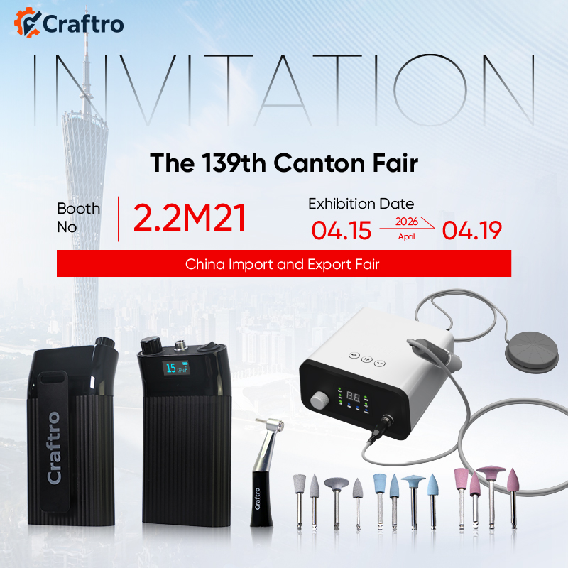 We cordially invite you to visit us at The 139th Canton Fair (China Import and Export Fair). Taking place from April 15 to 19, 2026, this world-renowned comprehensive trade event stands as a premier global hub for international business and industry exchange. Craftro Tech is proud to showcase our flagship Sterilizable Brushless Dental Micromotors and a comprehensive range of precision grinding solutions at Booth 2.2M21. We look forward to connecting with global buyers, dental professionals, and industry partners to discuss our high-precision, reliable, and medical-grade grinding technologies.