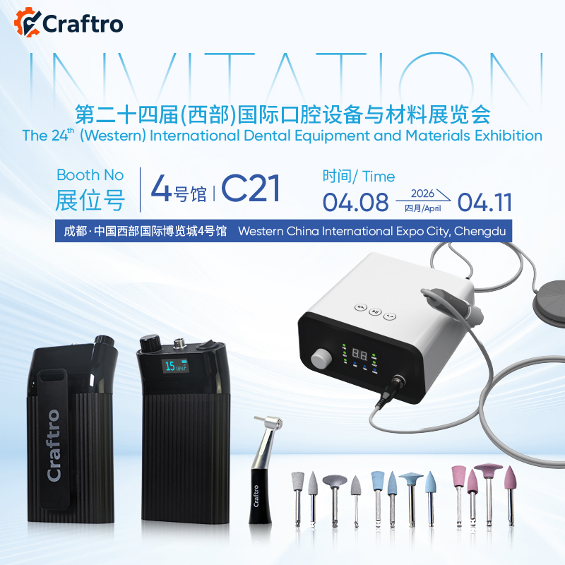 We cordially invite you to visit us at The 24th (Western) International Dental Equipment and Materials Exhibition (WCISE 2026).Taking place from April 08 to 11, 2026 at the Western China International Expo City, Chengdu, WCISE stands as a premier hub for the dental industry in Western China. Craftro Tech is proud to showcase our flagship Sterilizable Brushless Dental Micromotors and a comprehensive range of precision grinding solutions at Booth C21, Hall 4. We look forward to connecting with dental professionals and industry experts to discuss our high-precision, reliable, and medical-grade grinding technologies.